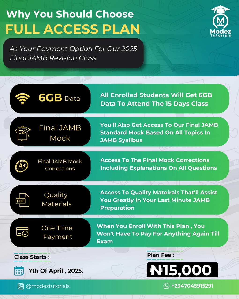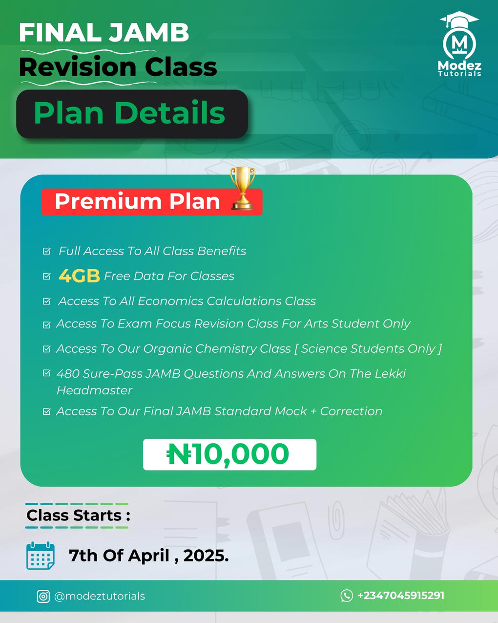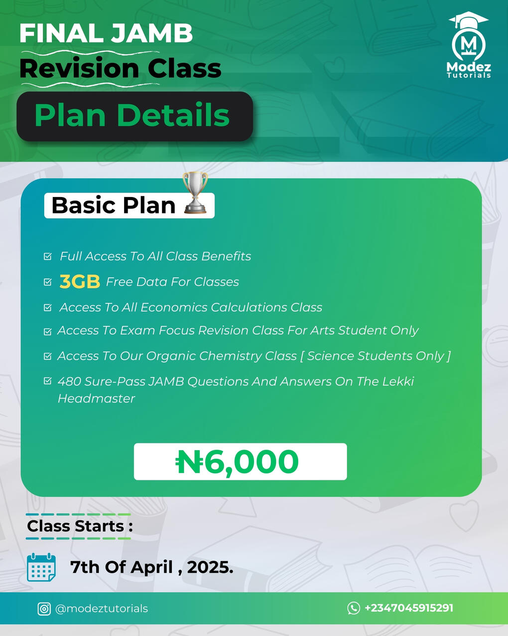 MODEZ TUTORIALS 2025 FINAL JAMB REVISION CLASS PRICING PLAN
