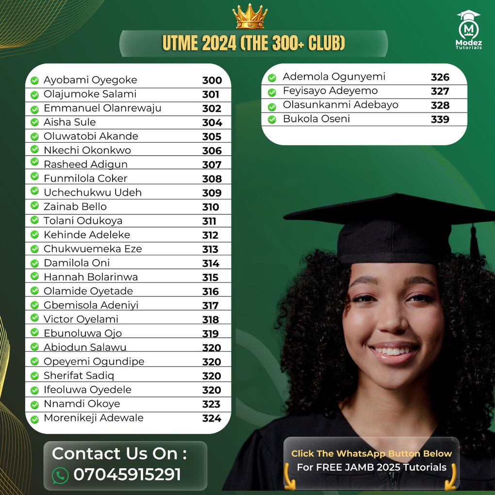 The students present here all Registered For our 2024 FINAL JAMB REVISION CLASSES and Successfully Smashed 300+ In Their Exam.Imagine How You Would Feel If You Could Smash 300+ In JAMB This Year And Secure Your Admission Too ?